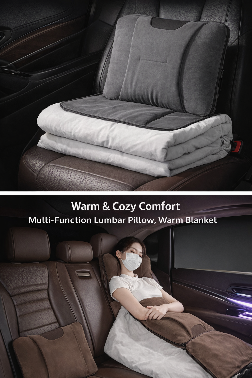 This 2-in-1 car lumbar pillow and blanket is designed for everyday driving comfort and relaxing breaks. Made with ultra-soft baby velvet fabric, it provides gentle back support and easily transforms into a cozy blanket for naps — perfect for all seasons.