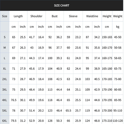 Size: S, M, L, XL, 2XL, 3XL, 4XL, 5XL, 6XL