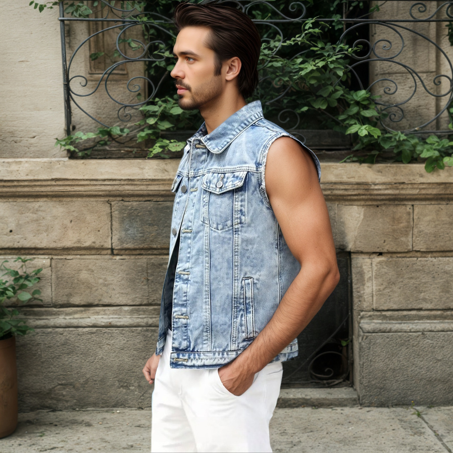 Upgrade your street style with this modern men’s denim vest. Designed for layering and everyday wear, it’s a must-have piece for spring and transitional seasons.