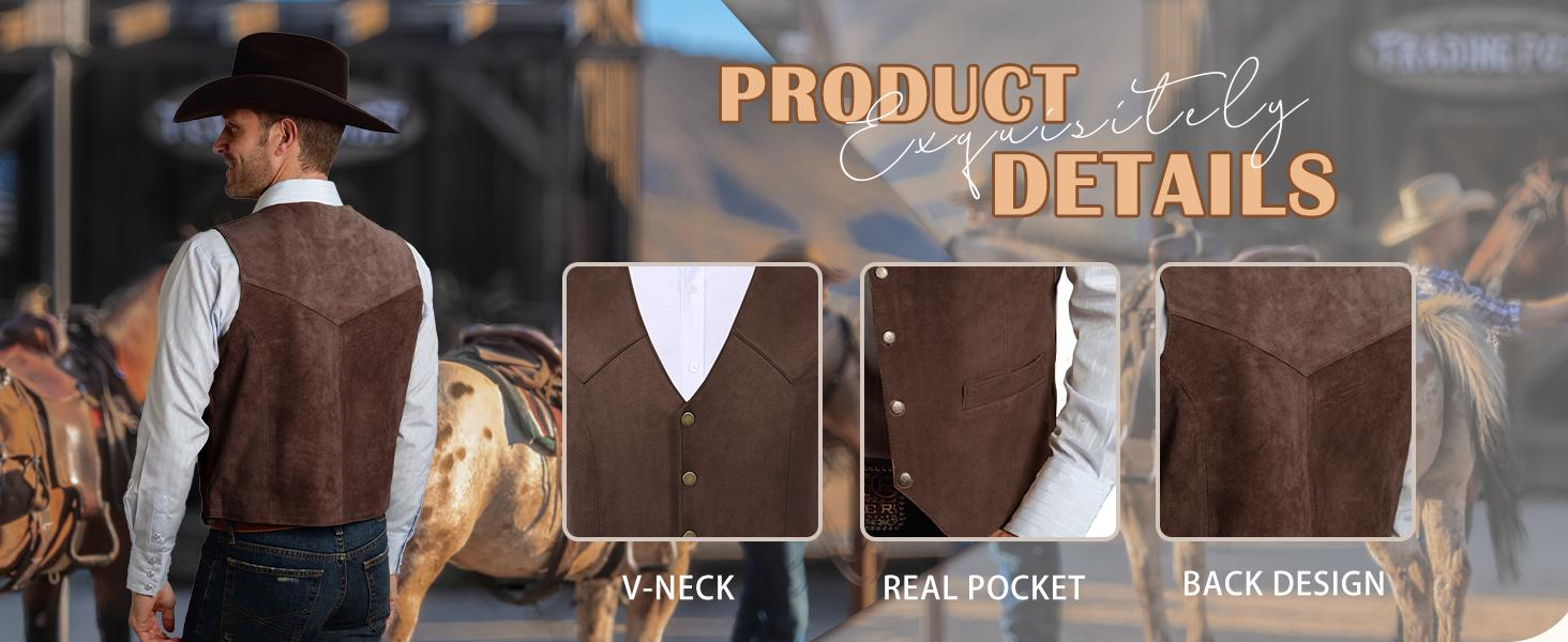 Upgrade your wardrobe with this men’s vintage suede leather vest, designed with a classic cowboy-inspired look and a clean slim-fit silhouette.