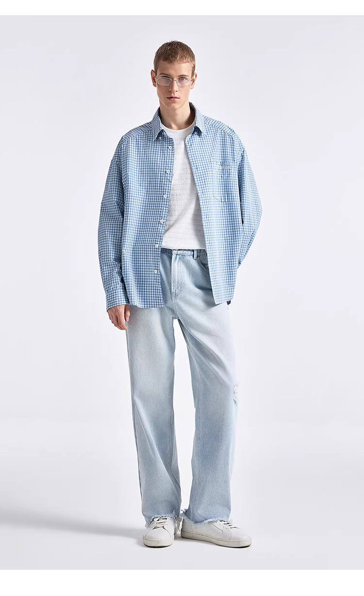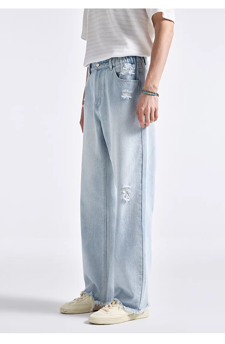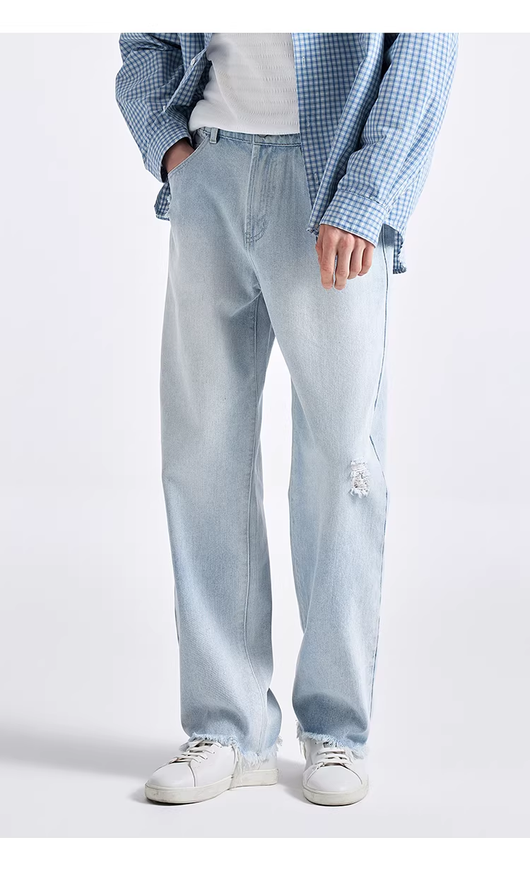 Designed with a modern vintage aesthetic, these straight-leg denim jeans feature a washed light blue finish and subtle distressed details. Crafted from a durable woven denim blend, they deliver both comfort and style — perfect for everyday wear.