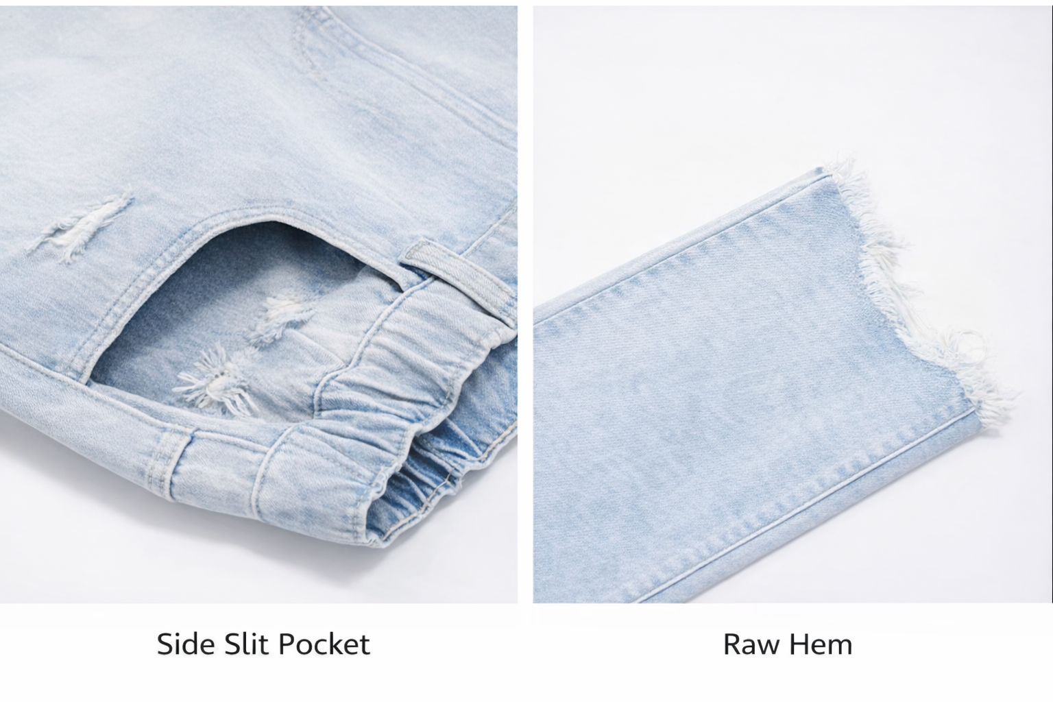 Naturally frayed hems create a relaxed, effortless streetwear feel.