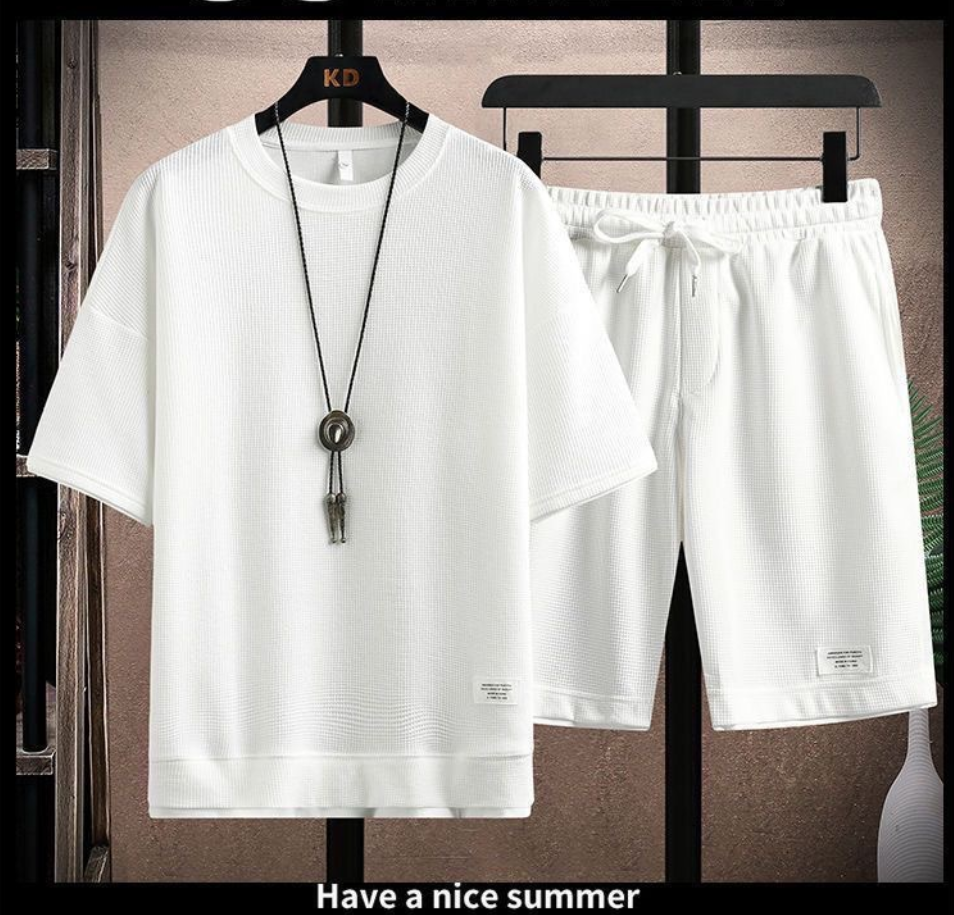 Upgrade your summer wardrobe with this men’s waffle knit 2-piece set, featuring a breathable short sleeve T-shirt and matching lightweight pants for an easy, put-together look.