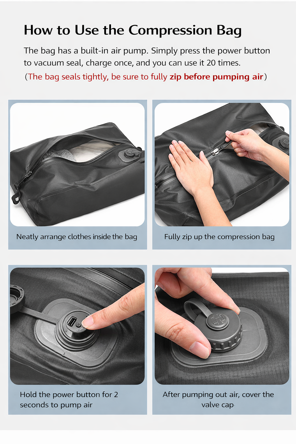 Rechargeable Automatic Vacuum Compression Travel Storage Bag